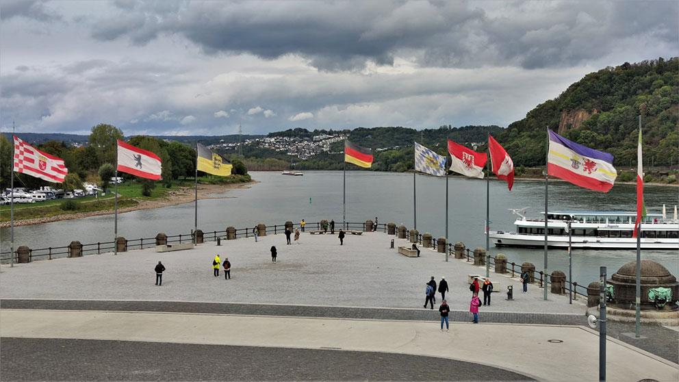 Die Bremer Speckflagge auf dem Deutschen Eck in Koblenz